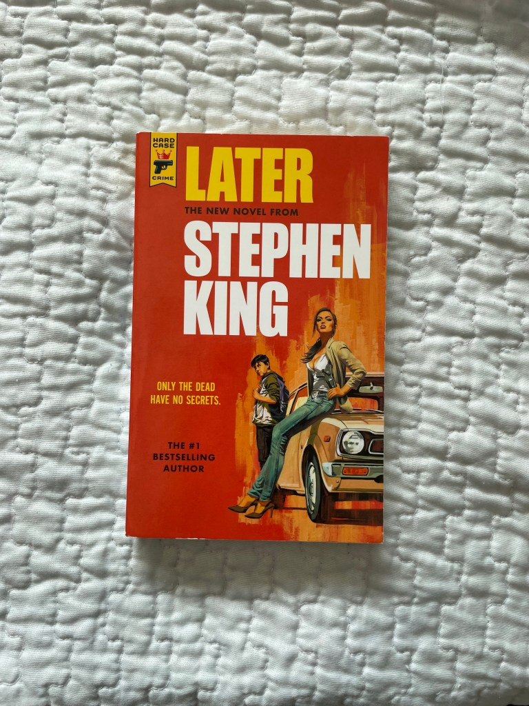 Later by Stephen King is the first Stephen King novel I have read this year and ever, so far, in my life. I would describe Later in the categories of crime, thriller, fiction, mystery, suspense, and paranormal activity. The story is about a son, Jamie, who develops a strange ability to "see what no one else can see and learn what no one else can learn" and a single struggling mother named Tia who does everything to protect her son. The book perfectly unravels how Jamie can use his strange ability to help others. I loved how engaging and addictive it was to read throughout the novel. Stephen King is widely known as a horror author; however, I wouldn't place Later by Stephen King in the horror category because it mainly focuses on paranormal activity and mystery/crime. In the future, I will definitely read more novels by Stephen King. Overall, I would give Later by Stephen King five stars.